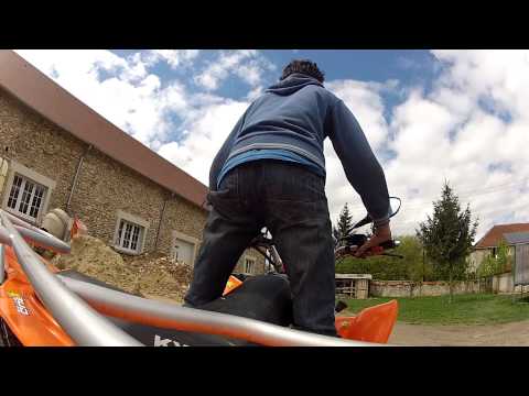 Éste llegó a mis manos hace tres años, en verano por las notas, a éste es al que menos modificaciones le he hecho, un año después le puse un tiro para llevar remolques casero, ya que los remolques también son caseros, poco después le puse unos leds arriba en el depósito, blancos. El verano pasado le puse los paramanos ACERBIS MX UNIKO naranjas, ya en septiembre le puse in pirulo rotativo de tractor de la marca SACEX, hace solo una semana le puse pegatinas de monster energy y rockstar energy.